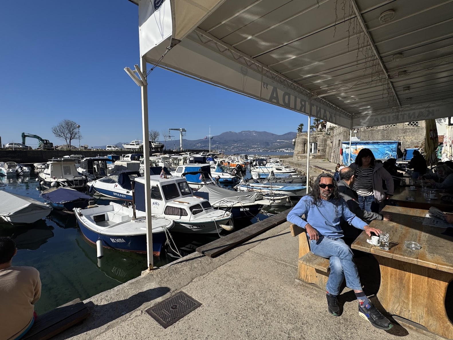 Terasa gleda ravno na lučicu. More, brodovi i ona posebna tišina koja nikad nije potpuna. Sve se čuje, ali ništa ne smeta. Sve nekako ide sporije.