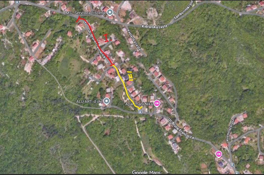 Prva faza radova planirana je od 13. do 27. travnja, osim u slučaju nepredviđenih okolnosti. Radovi će se izvoditi na dionici od spoja Kablarske ceste i Ulice Brune Francetića do kućnog broja 35 u Ulici Brune Francetića. Tijekom izvođenja radova navedena dionica bit će zatvorena za promet.